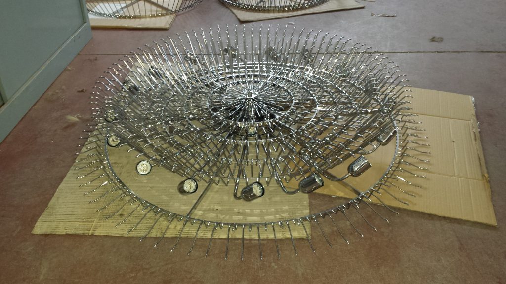 Dal disegno in scala 1:1 alla realizzazione della struttura, per finire, su specifica richiesta, anche alla consegna del prodotto finito con vetri, cristalli e luci.